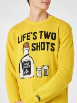 MC2 Saint Barth Man Yellow Sweater With “Life’s Two Shots” Lettering