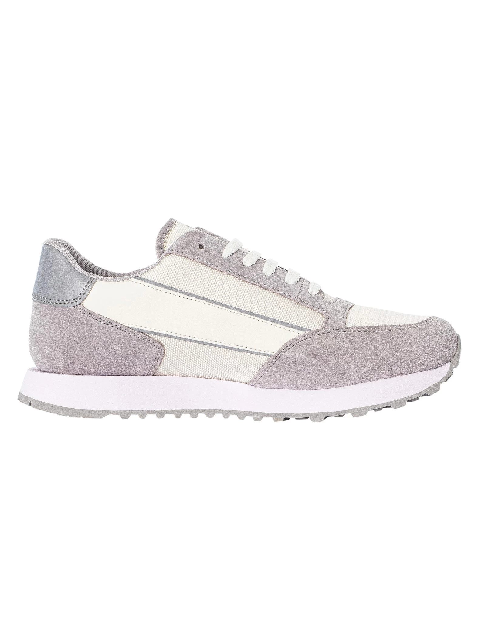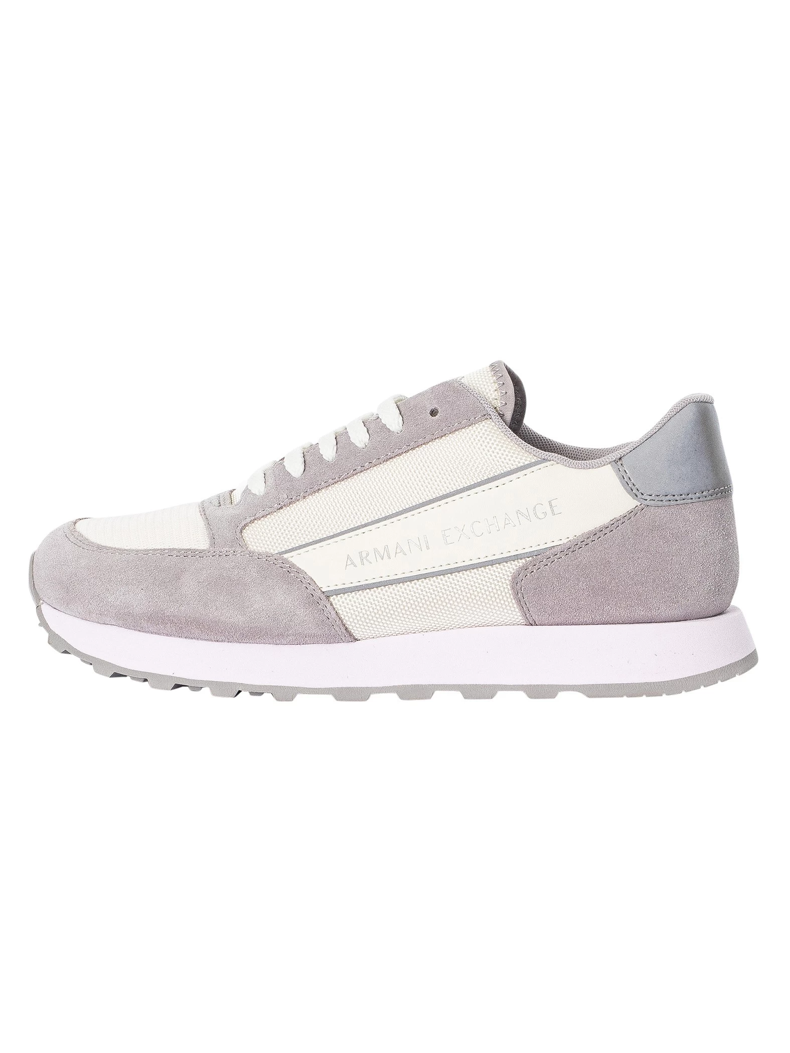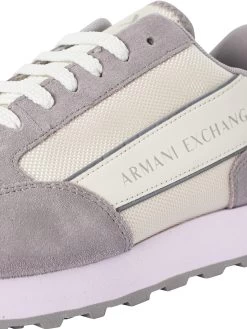 The Side Logo Suede Trainers from Armani Exchange comes in Off White/Silver colour, featuring branding on side. Coming with cushioned collar and tongue, these trainers feature grip sole and lace closure.