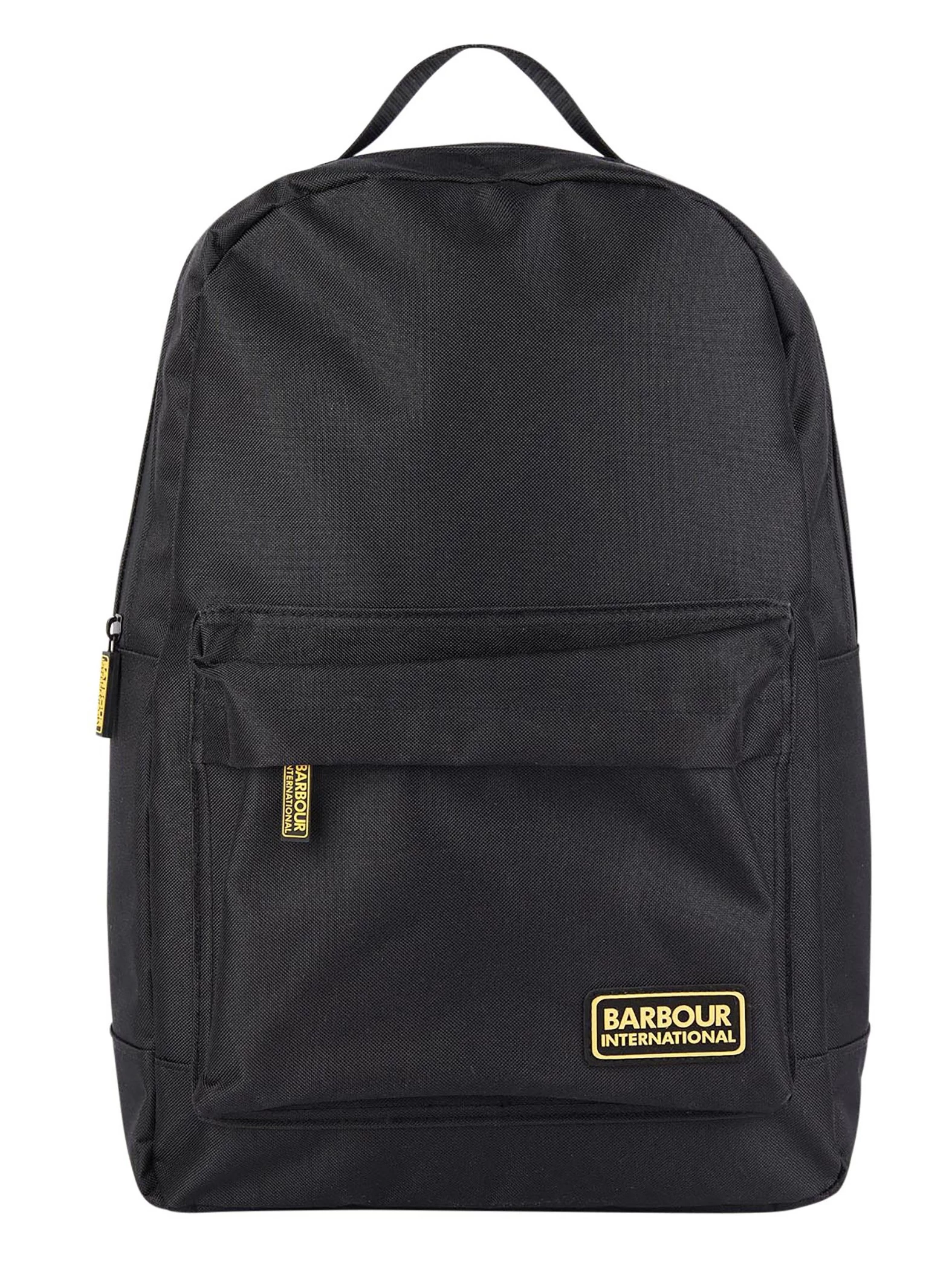 The Knockhill Backpack from Barbour International comes in Black colour, featuring front zip compartment with logo. Coming with adjustable branded strap, this backpack features a branded zip and inside laptop sleeve. Size: W 29cm x H 42cm x D 11.5cm. Capacity: 14L.