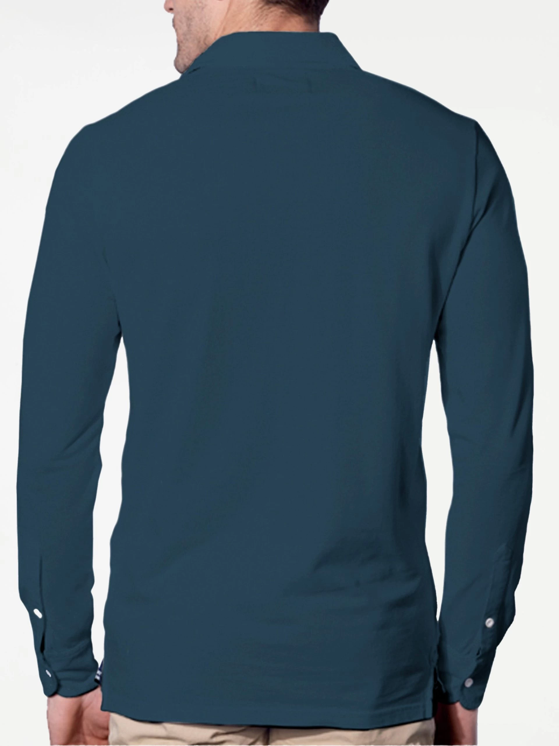 Blue navy polo shirt, Garment Dyed, Slim Fit, Long sleeves, St Barth logo details, Styled in St. Barth, 100% Light Cotton Piquet