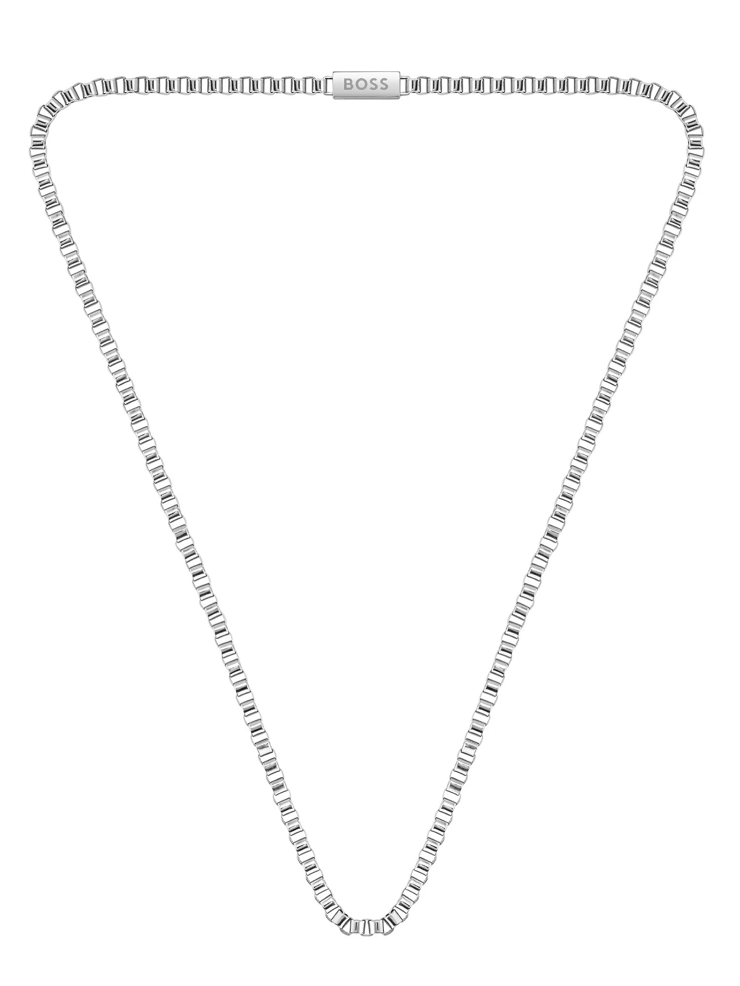 The Chain For Him Necklace from BOSS comes in Steel colour. This necklace features cube-shaped links and clasp with branding. Length: 58cm