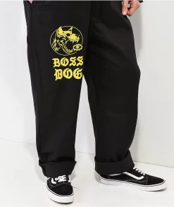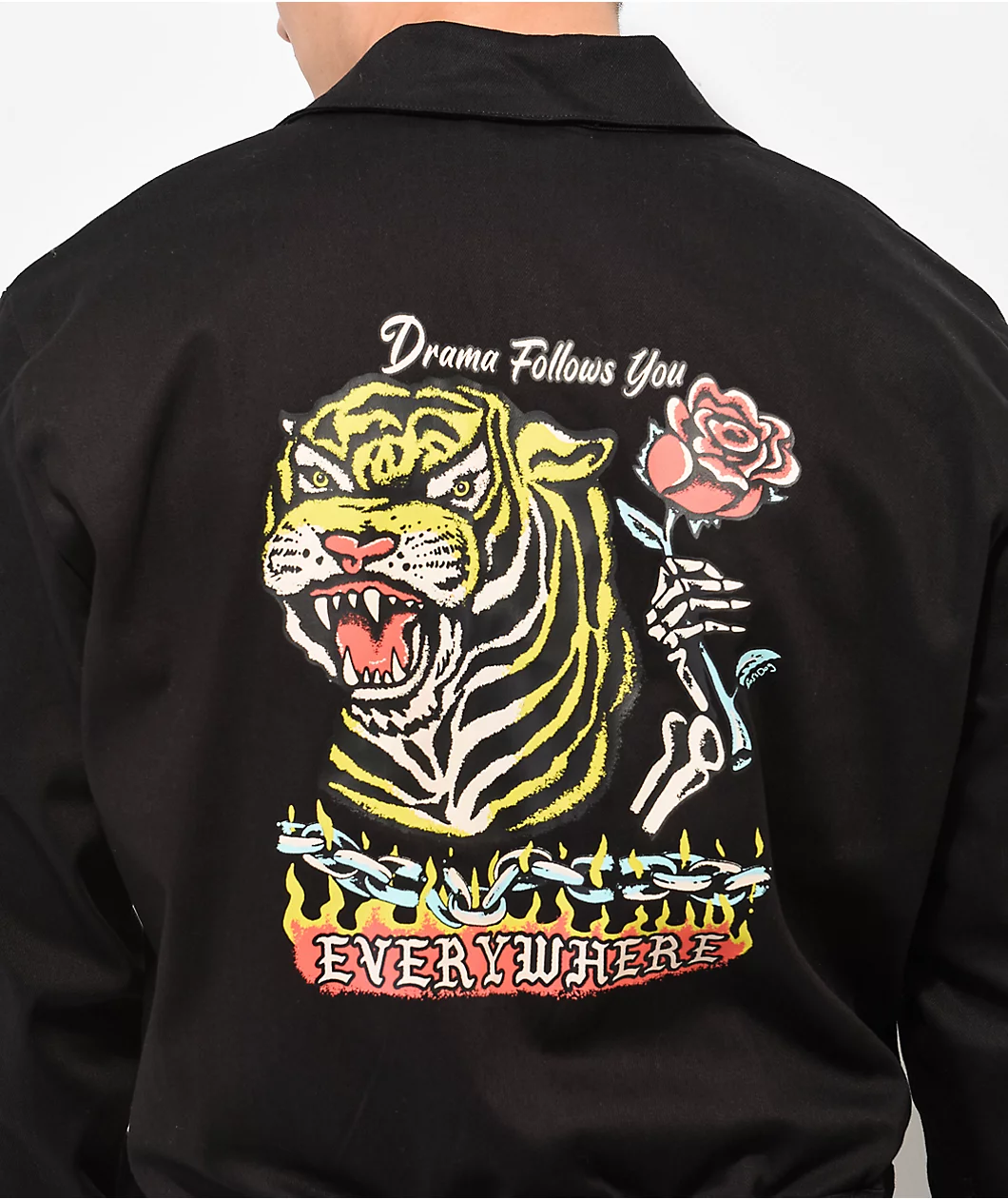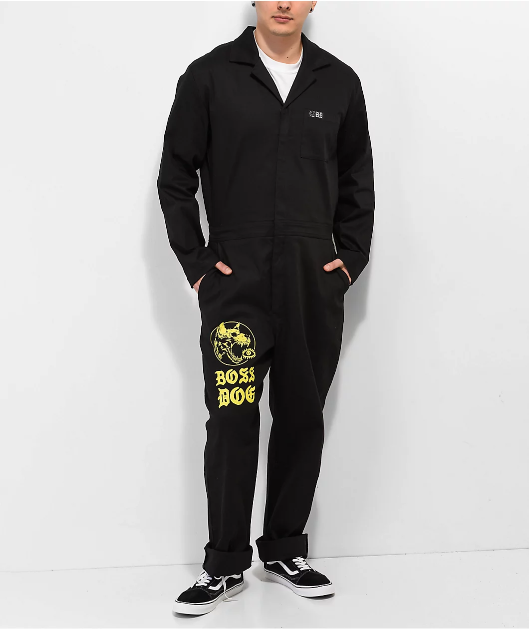 From Boss Dog, the Drama coveralls come in a black colorway, adding a workwear-inspired look to your outfits. The black coveralls have a one-piece full zip design, and features yellow graphics along the right leg, and a large image of a tiger on the back. With a simple 4-pocket design, an additional chest pocket, the jumpsuit is finished with a traditional fold over collar.