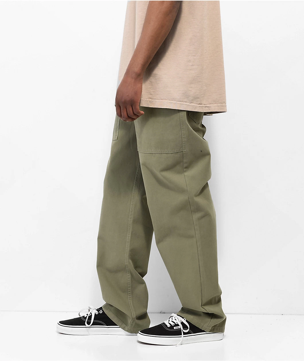 The Surplus pants from Brixton come in an olive green colorway, offering storage with dual slash hand pockets and dual seat pockets. These casual pants have a relaxed silhouette that provides a laid-back look, finished off with a button-and-fly closure for a secure fit.