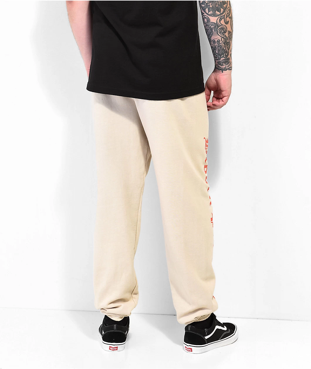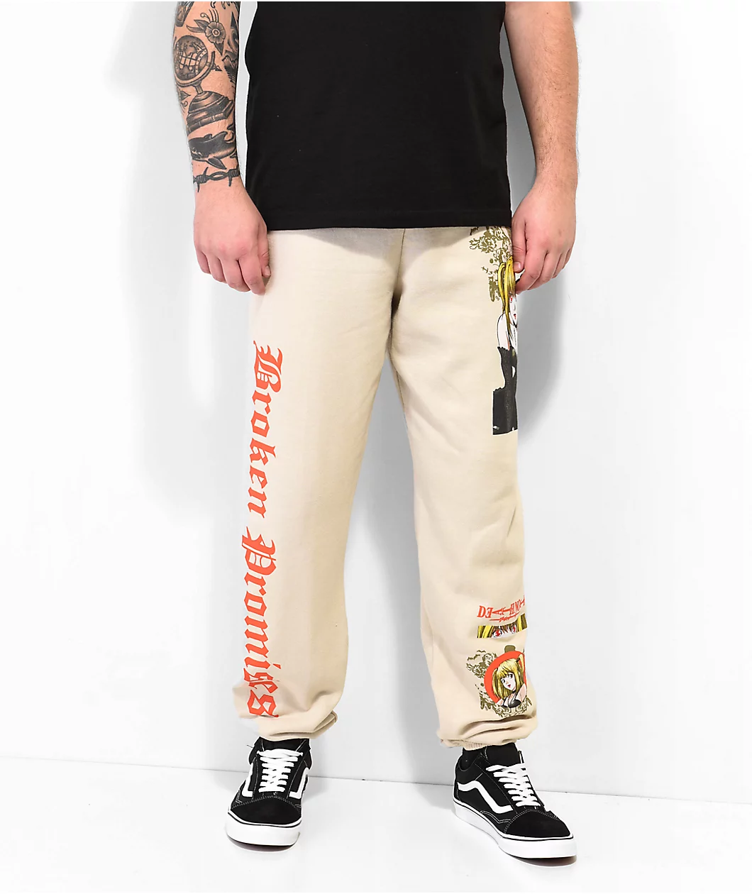 An official collaboration between Broken Promises x Death Note brings the Misa sweatpants in a sand colorway. On the upper left thigh is a graphic of Misa staring at the viewer with red eyes, while on the lower cuff are more graphics portraying Misa along with Death Note logo text. On the right thigh is Broken Promises brand text in a red that draws the eye, running the full length of the pant. These sweatpants feature an elastic waistband, and come complete with an adjustable drawstring for a custom fit.