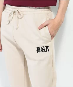 DGK brings the Harmony sweatpants in a sand colorway, offering warmth and comfort with a fleece construction. Colorful embroidery down both legs shows off a hockey mask among various flora including flowers and a mushroom, coming complete with an adjustable drawstring cord in the waist and ankle cuffs for a snug fit.