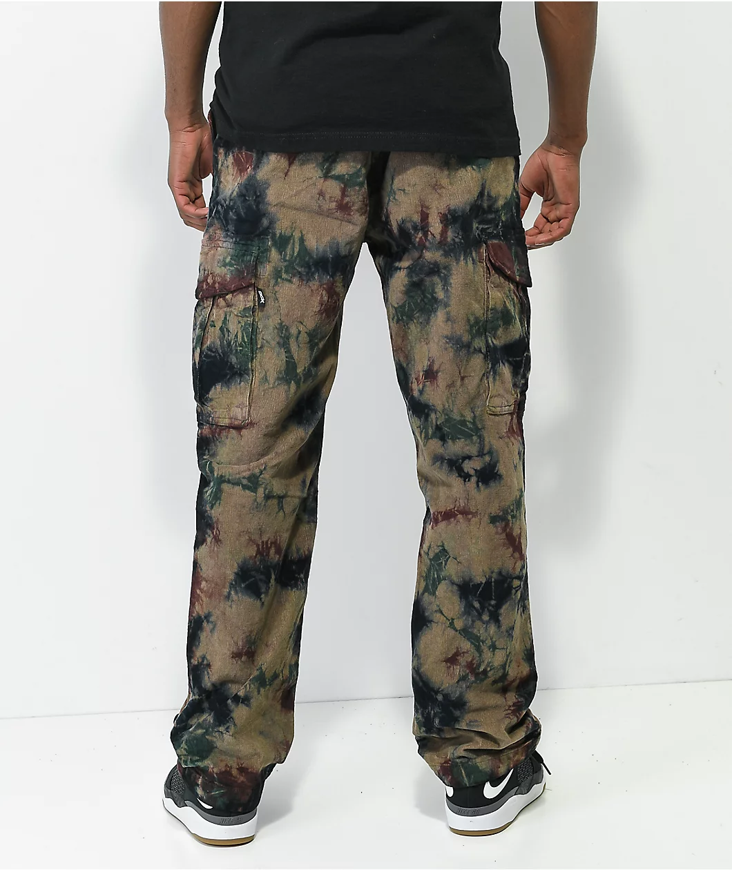 DGK brings a style that is durable and versatile with the O.G.S green tie dye camo cargo pants. These relaxed fit pants are made from a corduroy construction with a brown, black and green camo wash throughout for a unique spin on a classic print. The adjustable bottom hems allow you to create your own custom fit, while the street-stretch technology provides added mobility. Equipped with 6 multi-use utility pockets, these corduroy pants are built for any casual adventure.