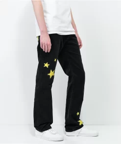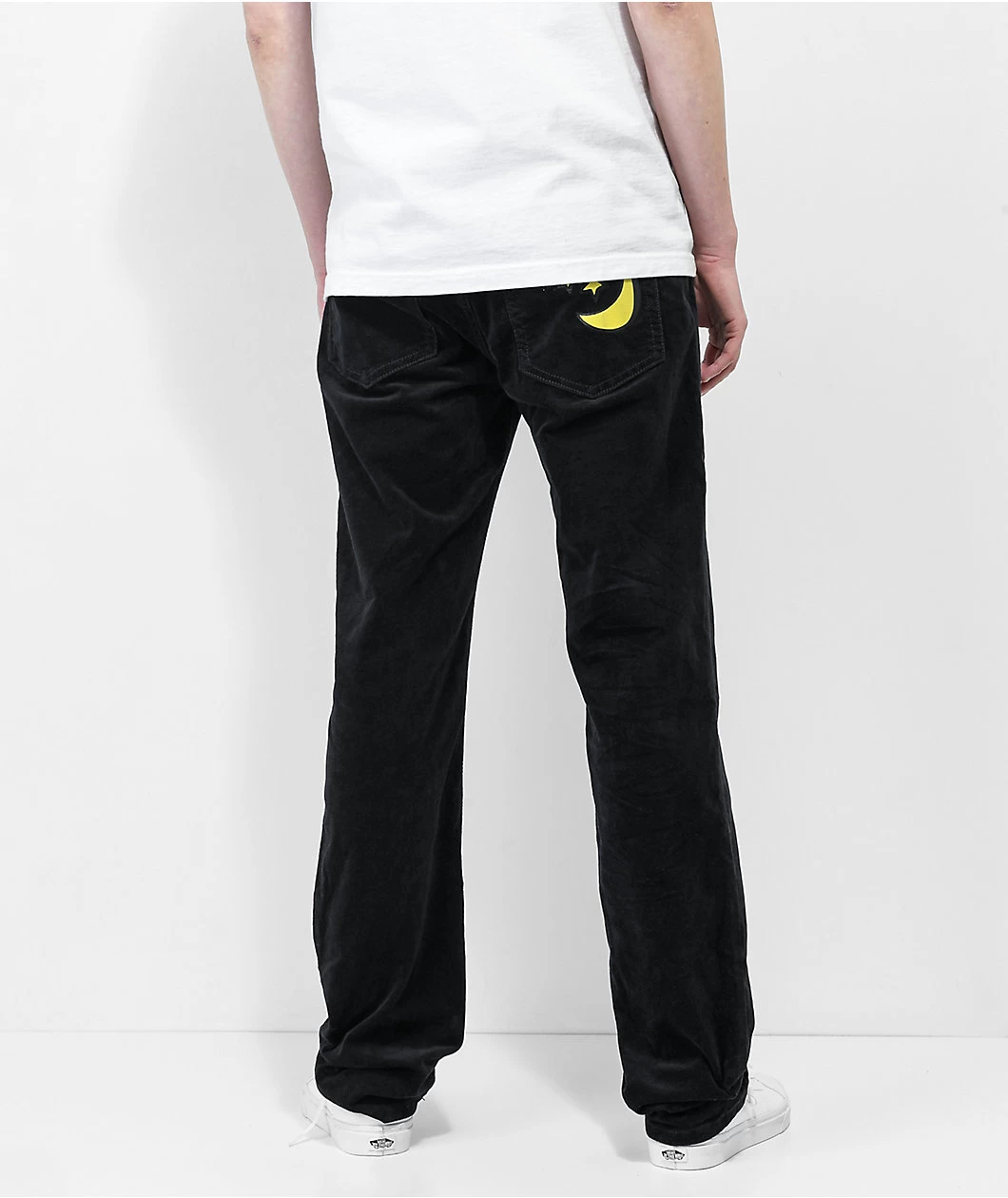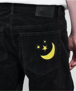 From Dript Denim comes the Starry Night corduroy pant in a navy blue color scheme. The soft and smooth texture of the pants are accentuated with screen-printed graphics inspired by the night sky on the left ankle, right thigh and right seat pocket. The loose, yet tapered fit of these corduroys come in a classic 5 pocket configuration and are complete with metallic hardware, a button fly, and a branded leather patch on the back.