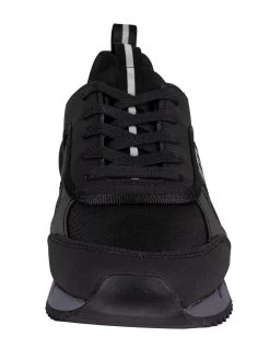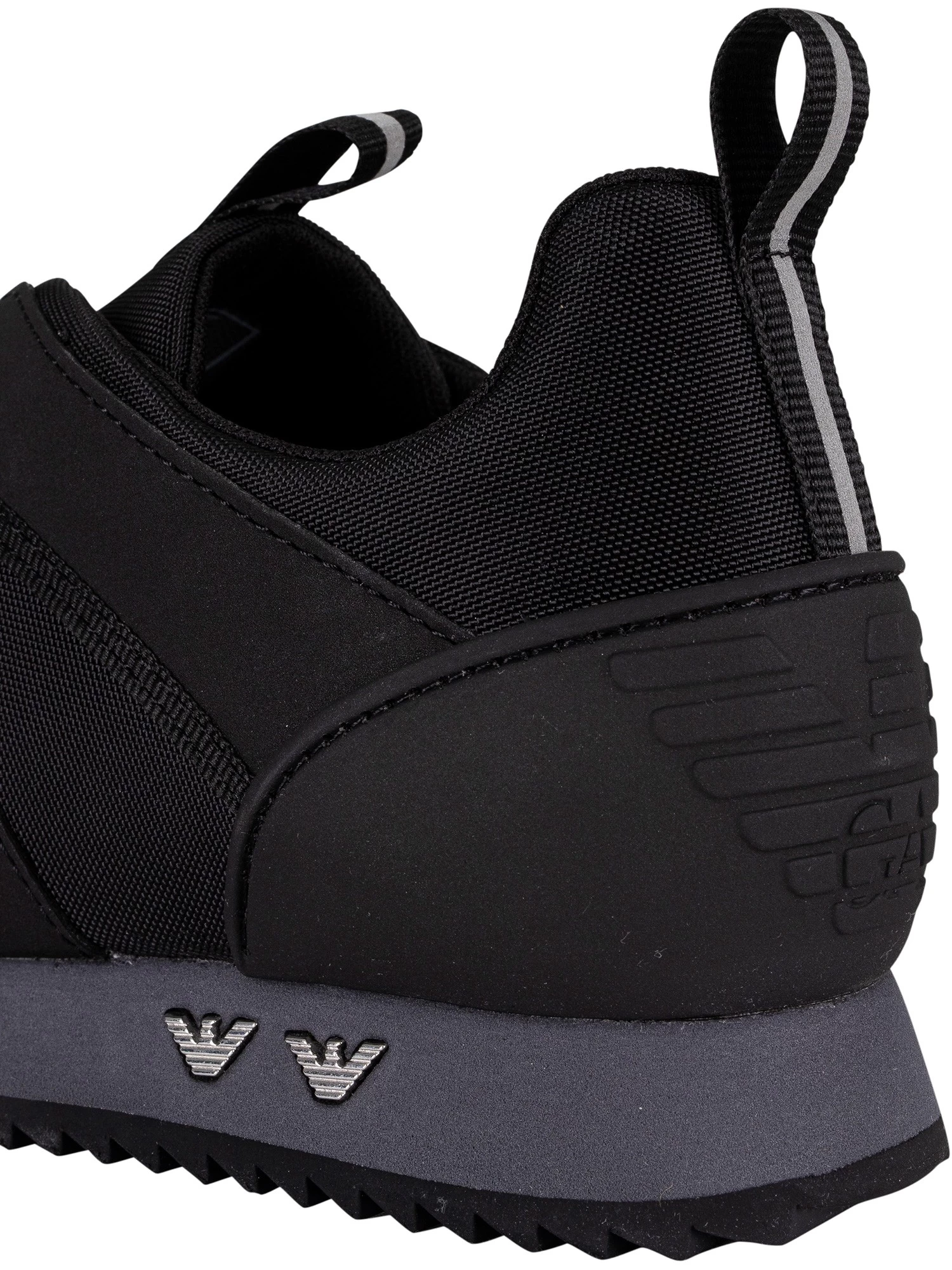 The Side Logo Synthetic Trainers from EA7 comes with a cushioned collar and tongue, featuring metal logos on side. Coming in Black colour, these trainers feature branding on side.