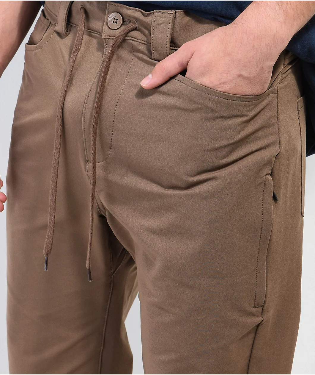 Element brings the Sawyer chino pants in a subtle brown colorway. These dress pants offer a versatile fit with a shoelace adjustable drawstring sewn into the waistline, ensuring a snug fit every time. Looks aside, these chinos offer ample storage space with two front slash hand pockets, joined by a zippered pocket on the left thigh, as well as two seat pockets with a welt pocket above the right side. Whether you’re skating the day away or treating that special someone to a night out, these pants are sure to be a favorite.