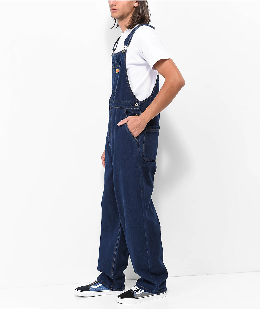 Add a relaxed vibe to your wardrobe with these loose fit evening skate denim overalls from Empyre, coming in a dark blue colorway. Embroidered on the chest pocket is the recognizable Empyre brand name in accents of red and yellow that draw the eye, also found in a tag on the right seat pocket. Not only are these overalls made from a durable cotton material, they provide ample storage with dual chest pockets and a classic 5 pocket construction, coming complete with adjustable shoulder straps for a custom fit every time.