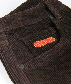 Stay comfy and cozy with the Skate java corduroy pants from Empyre. These vintage-style, deep brown cords feature a stretchy, straight leg construction for a loose, forgiving fit that won’t hinder movement. A bright Empyre tag appears at the watch pocket, adding some unique, colorful branding to these loose jeans.