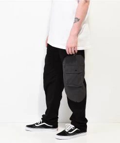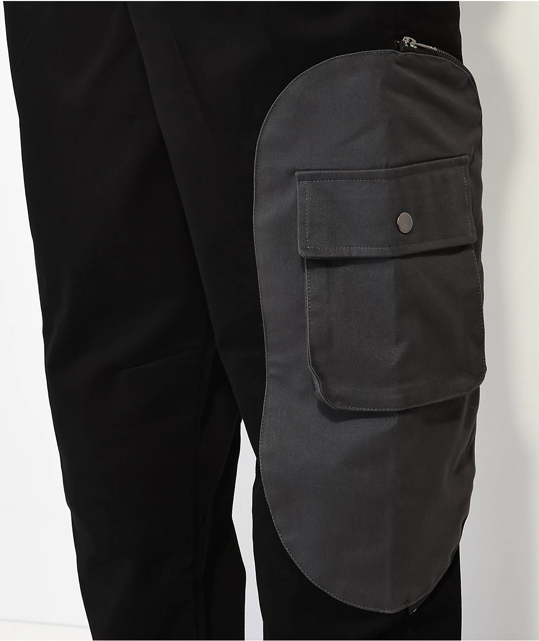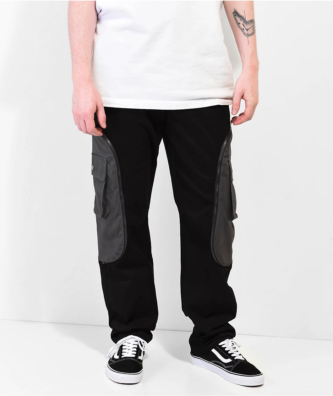 From EPTM comes the Publisher cargo pants in a black colorway. These pants feature a four pocket configuration with added zippered cargo pockets on either side; adding even more storage space with additional button closure pockets on top. These pants are constructed of a cotton-poly blend that is both comfortable and durable.