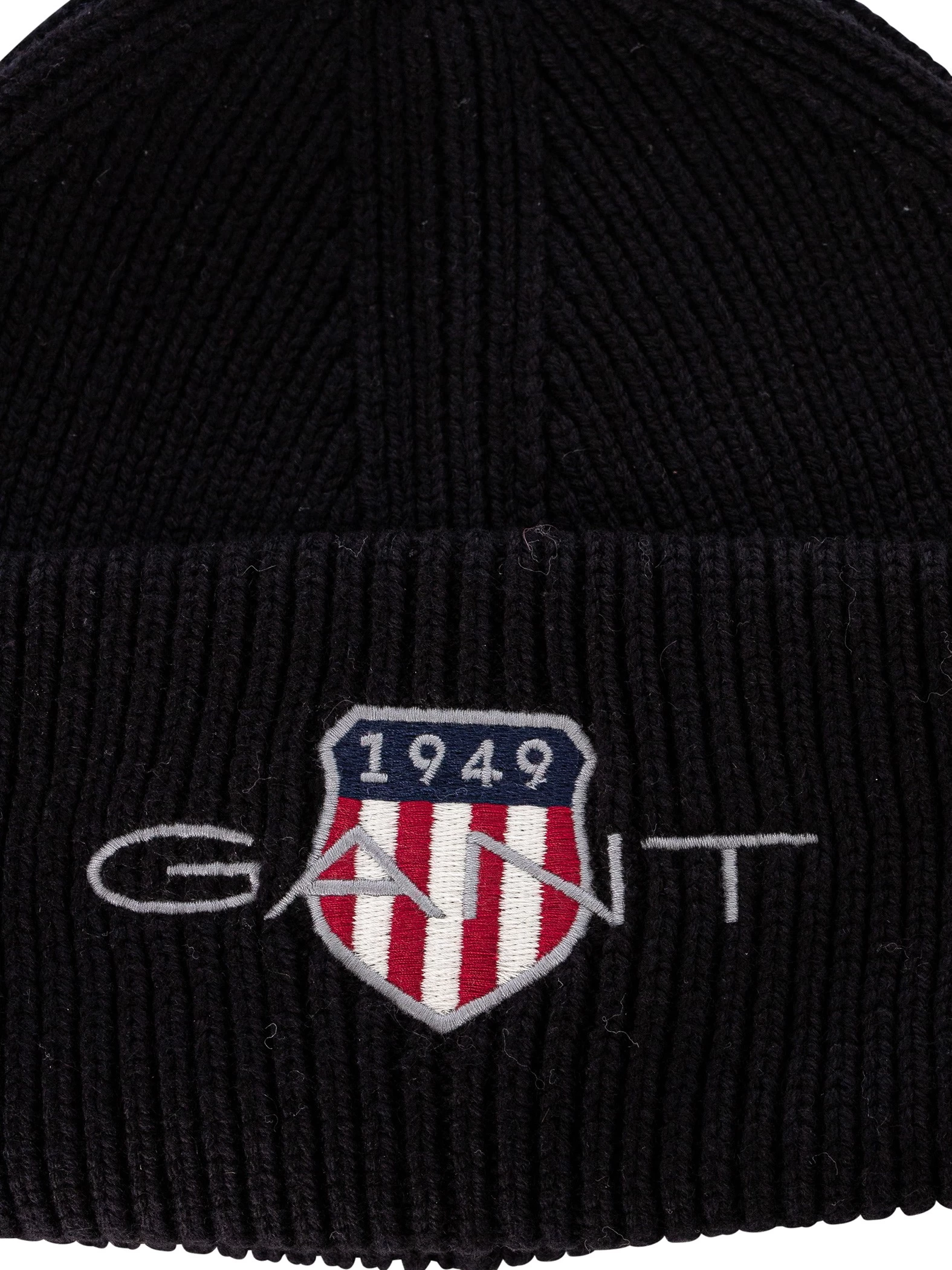 The Archive Shield Cotton Beanie from GANT features an embroidered logo on front. This elasticated beanie comes in Black colour.