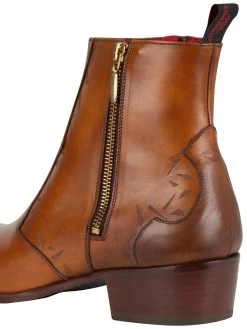 The Carlito Leather Boots from Jeffery West comes in Castano colour, featuring a leather upper and are branded on sole. Comes with a high heel and zip on side closure, these boots feature branded tag on back.