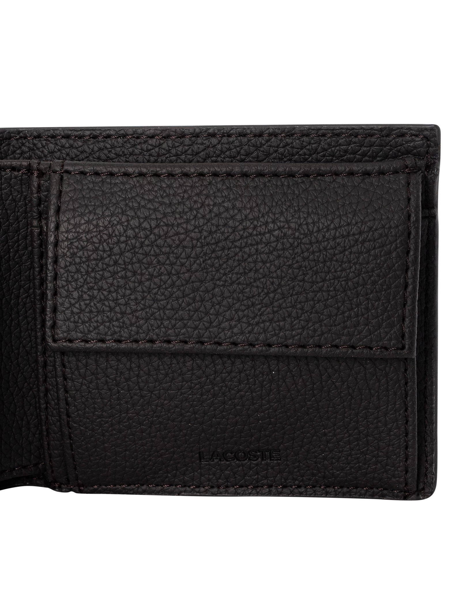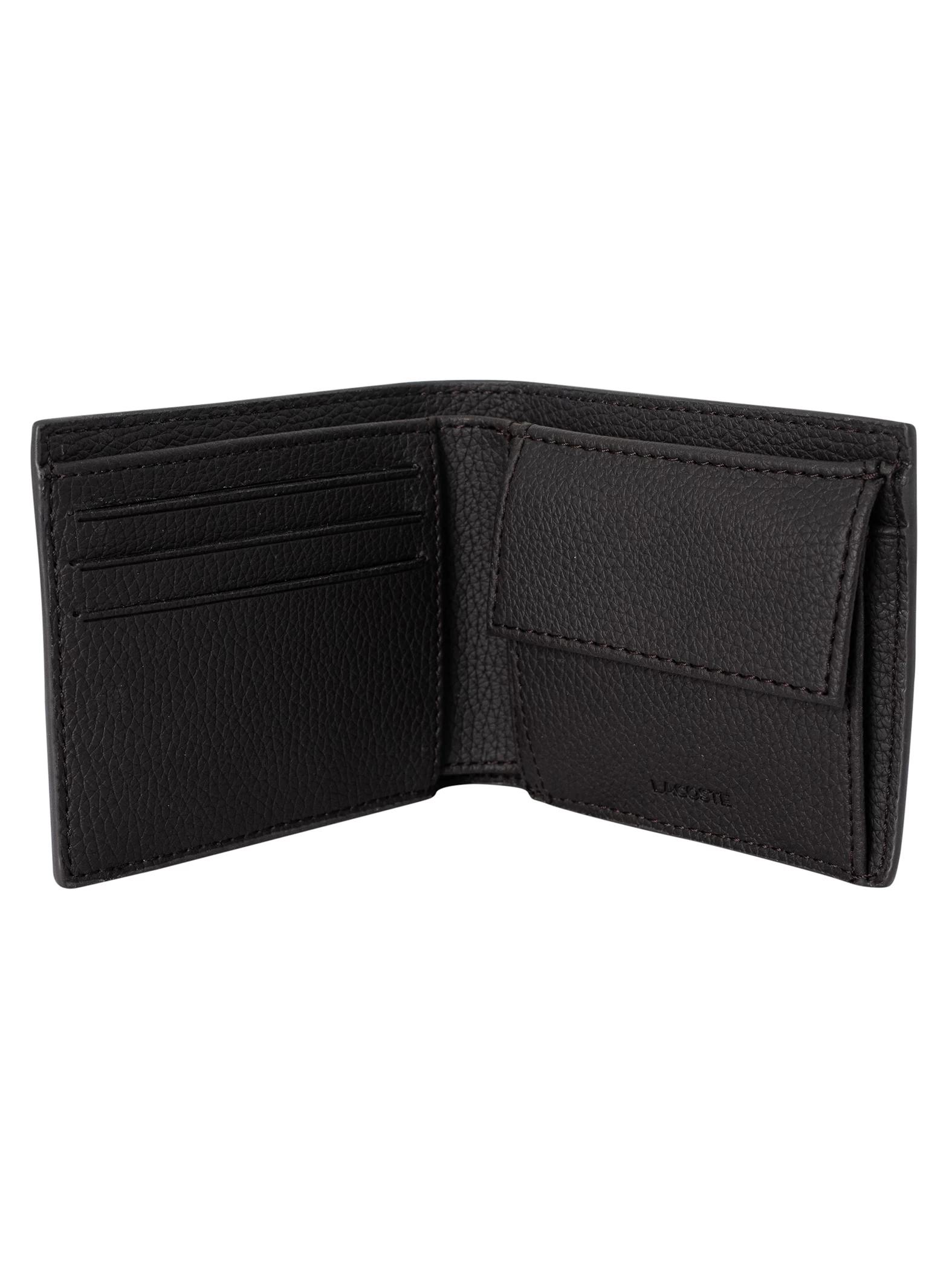 The Billfold Coin Wallet from Lacoste comes in Brown colour, featuring a metal logo on front. Coming with card and note slots, this wallet features buttoned coin section and inside branding. Size: H 9.5cm x W 11cm x D 3cm.