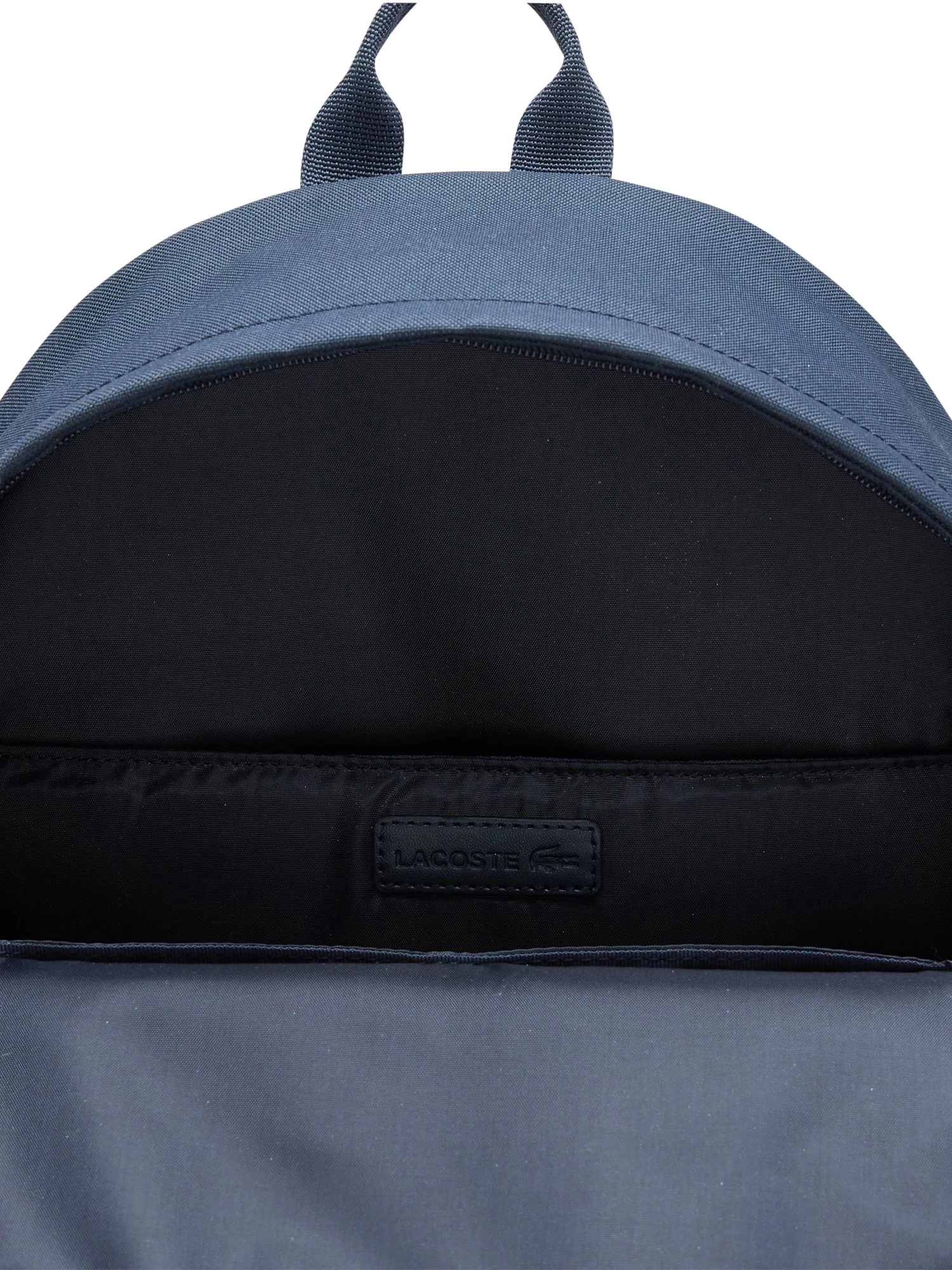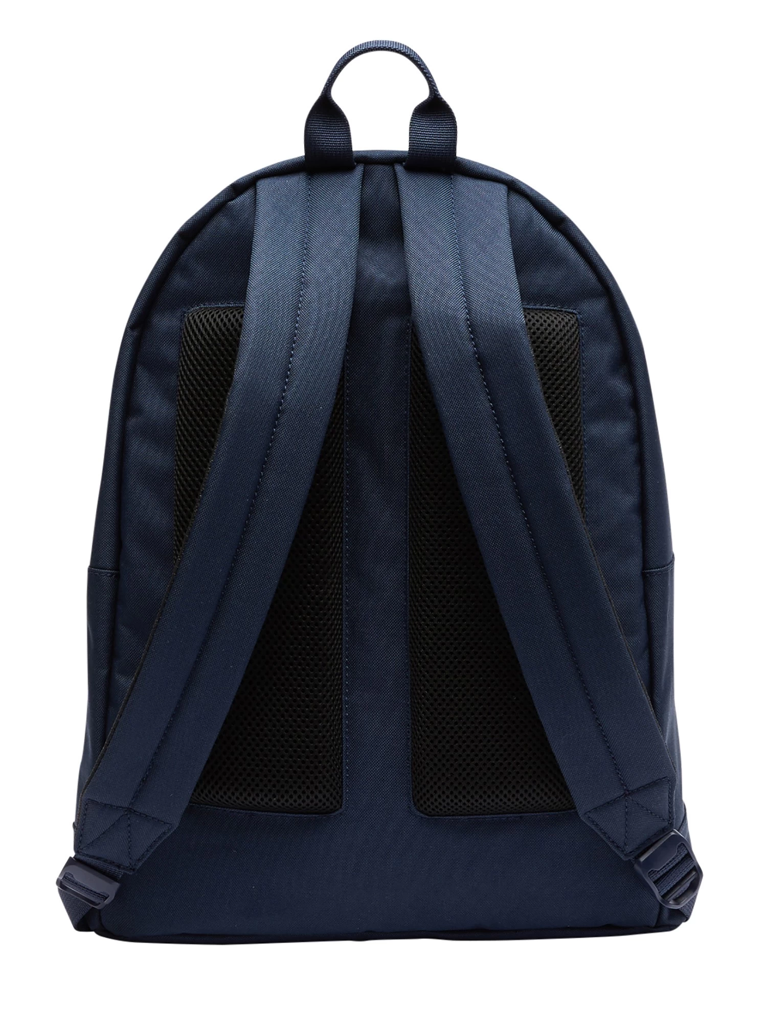 The Embroidered Logo Backpack from Lacoste comes in Navy colour, featuring an embroidered logo on front compartment. Coming with adjustable straps, this backpack features a padded back for added comfort. This backpack sports zip compartments, a laptop sleeve, and embossed branded zip pulls. This backpack is made with recycled polyester – recycled synthetic fibres reducing its impact on the environment.