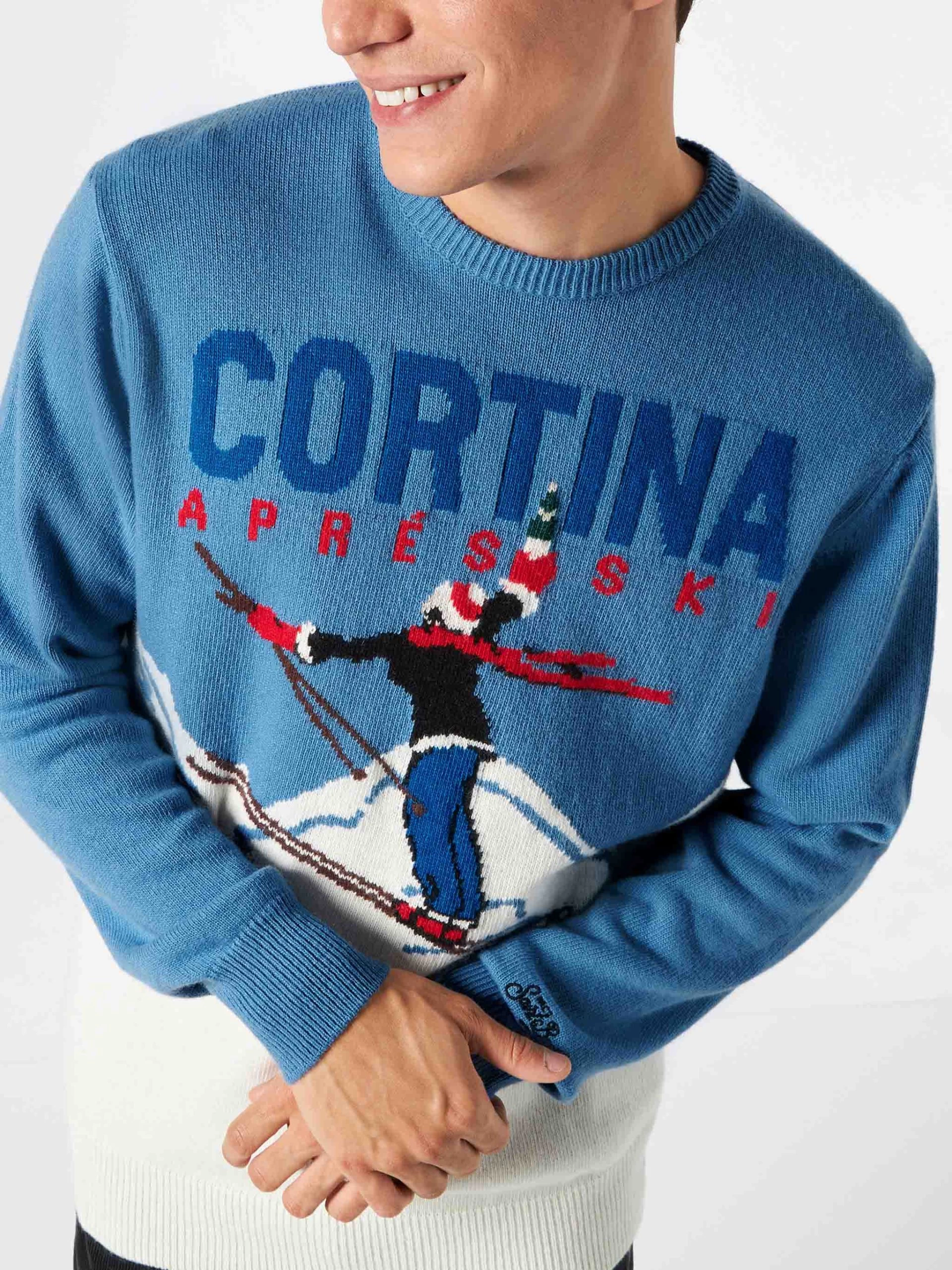 Be the first to review “Man Light Blue Sweater With Cortina Postcard Print” Cancel reply