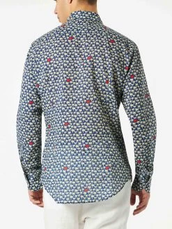 MC2 Saint Barth Man Muslin Cotton Sikelia Shirt With Palm Print
