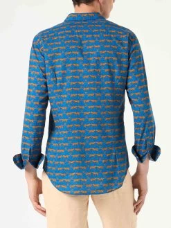MC2 Saint Barth Man Muslin Cotton Sikelia Shirt With Wild Cat Print