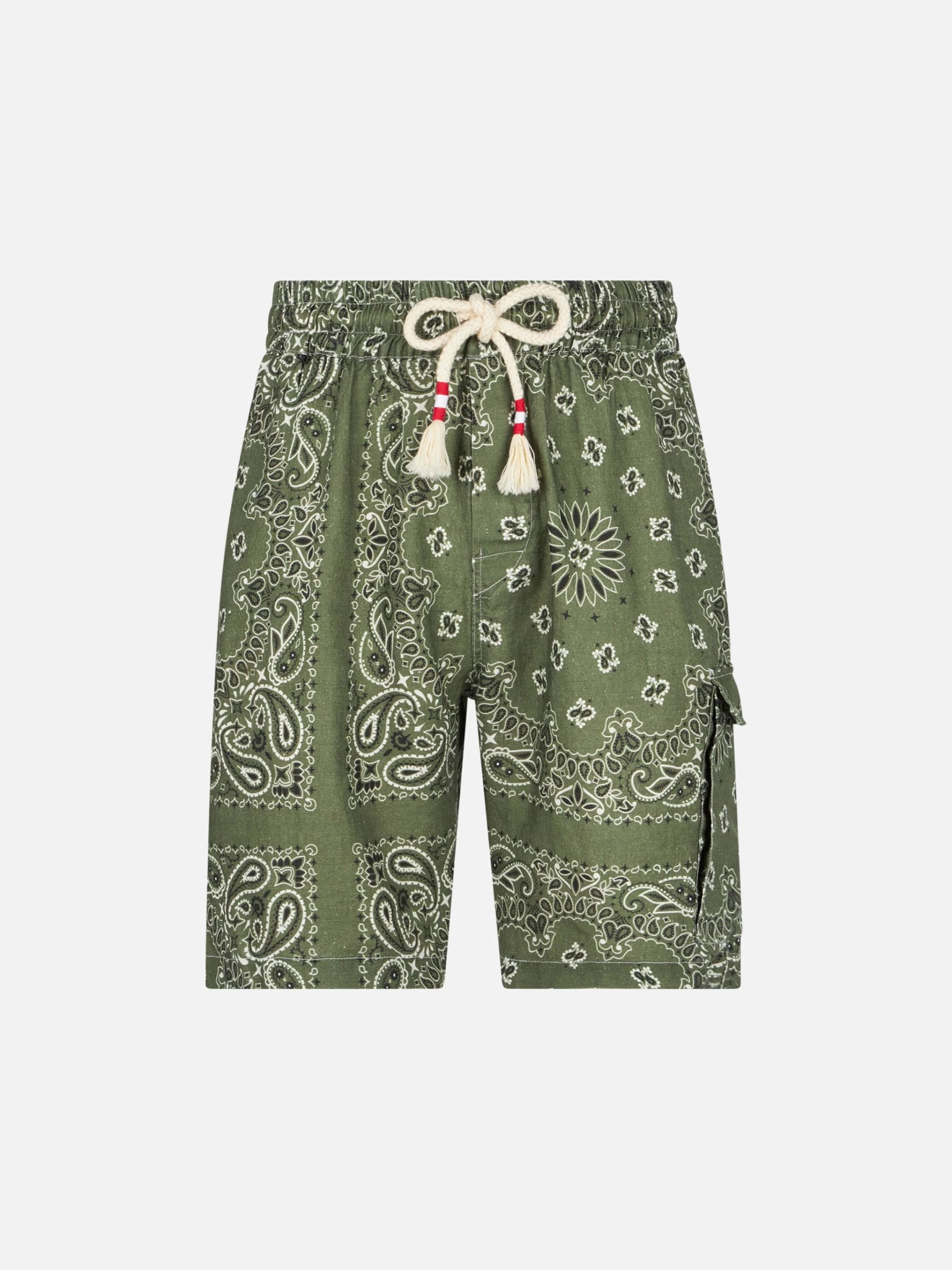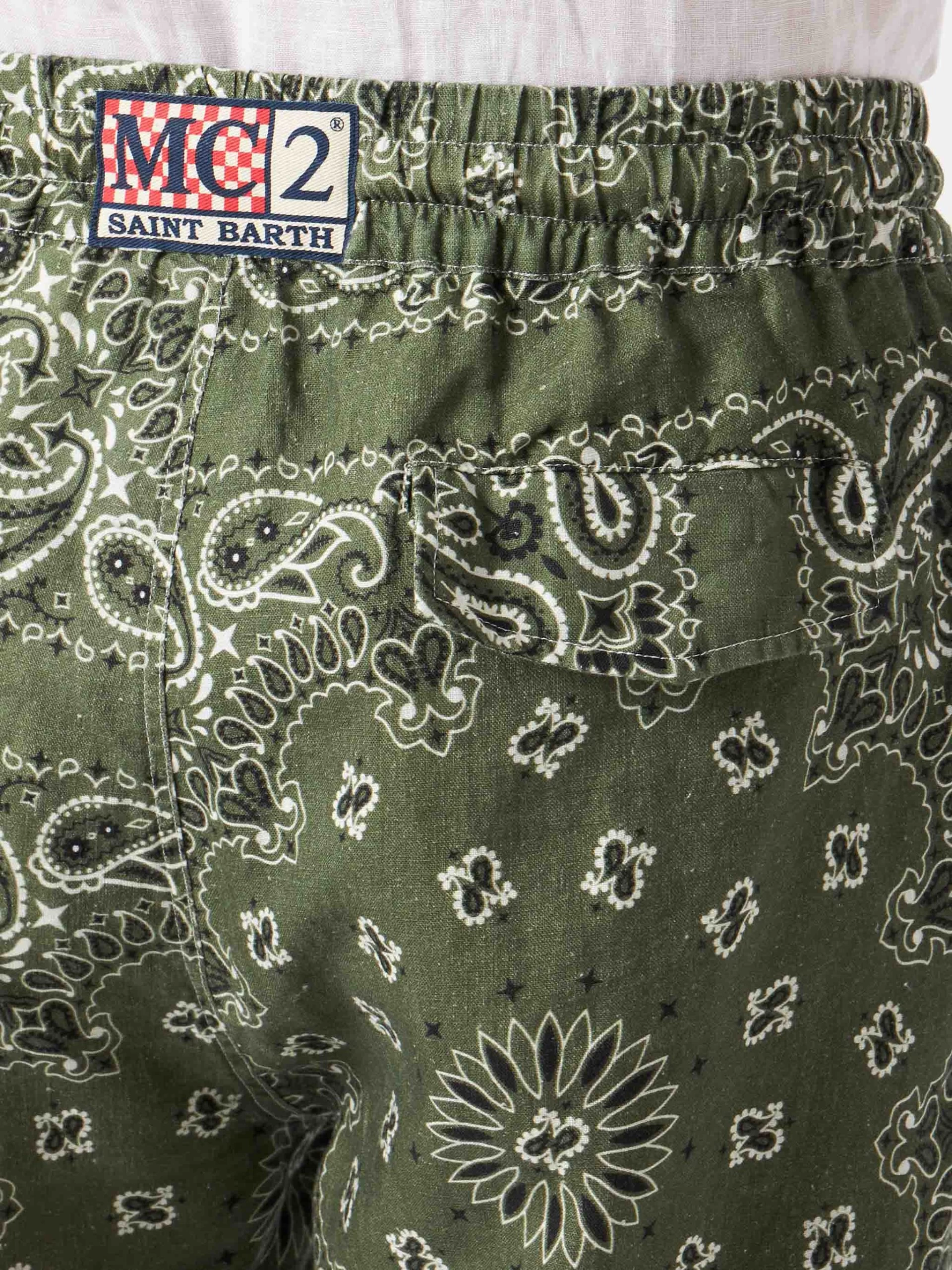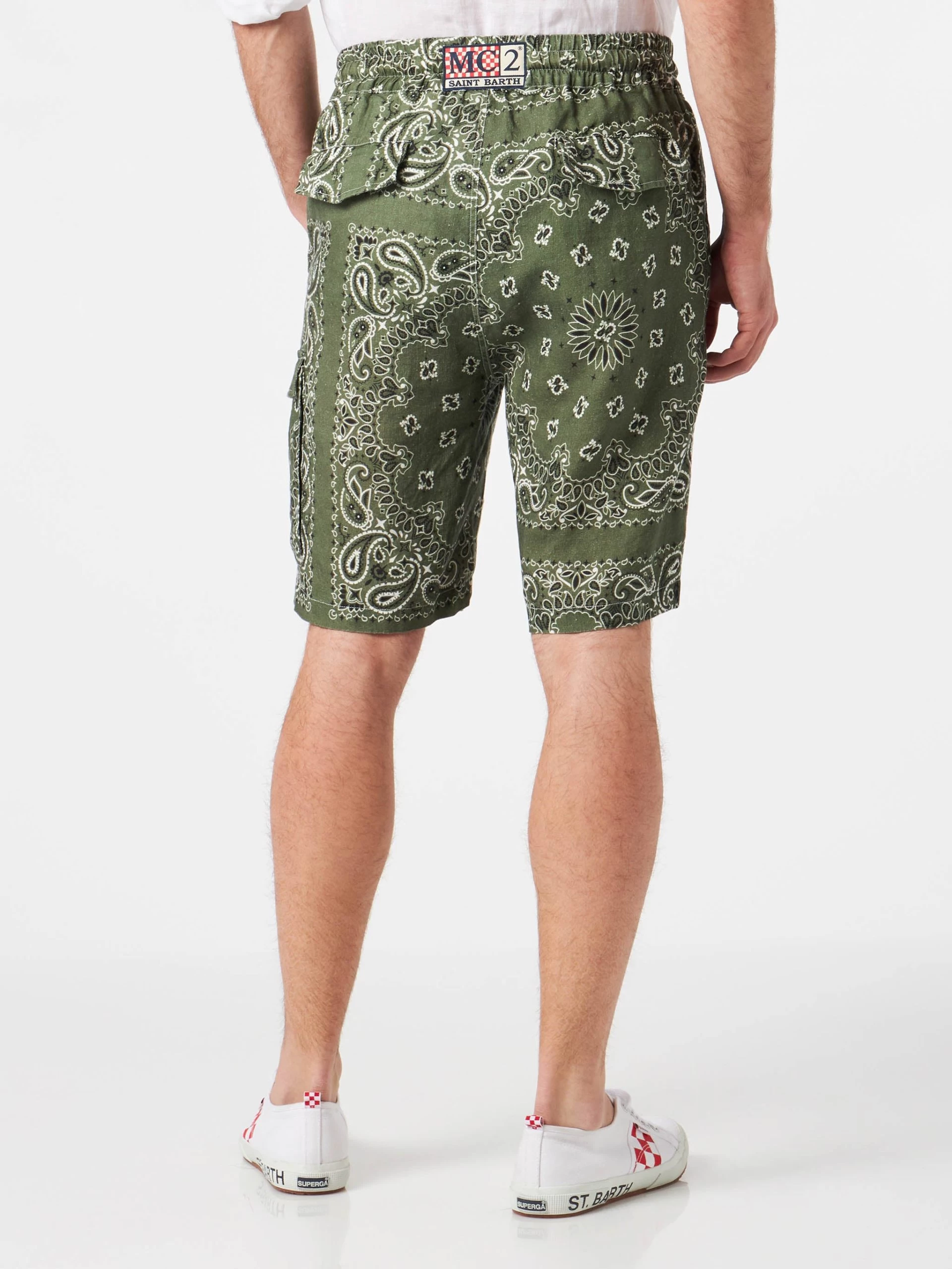 Be the first to review “MC2 Saint Barth Man Linen Bermuda Shorts With Military Green Bandanna Print” Cancel reply