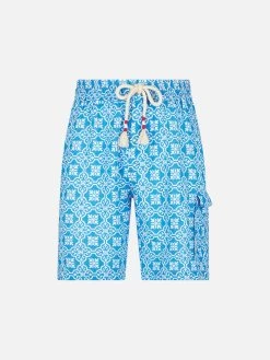 Be the first to review “MC2 Saint Barth Man Linen Bermuda Shorts With White And Light Blue Majolica Print” Cancel reply