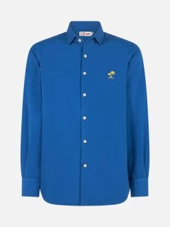 MC2 Saint Barth Man Muslin Cotton Sikelia Shirt With Palm Print