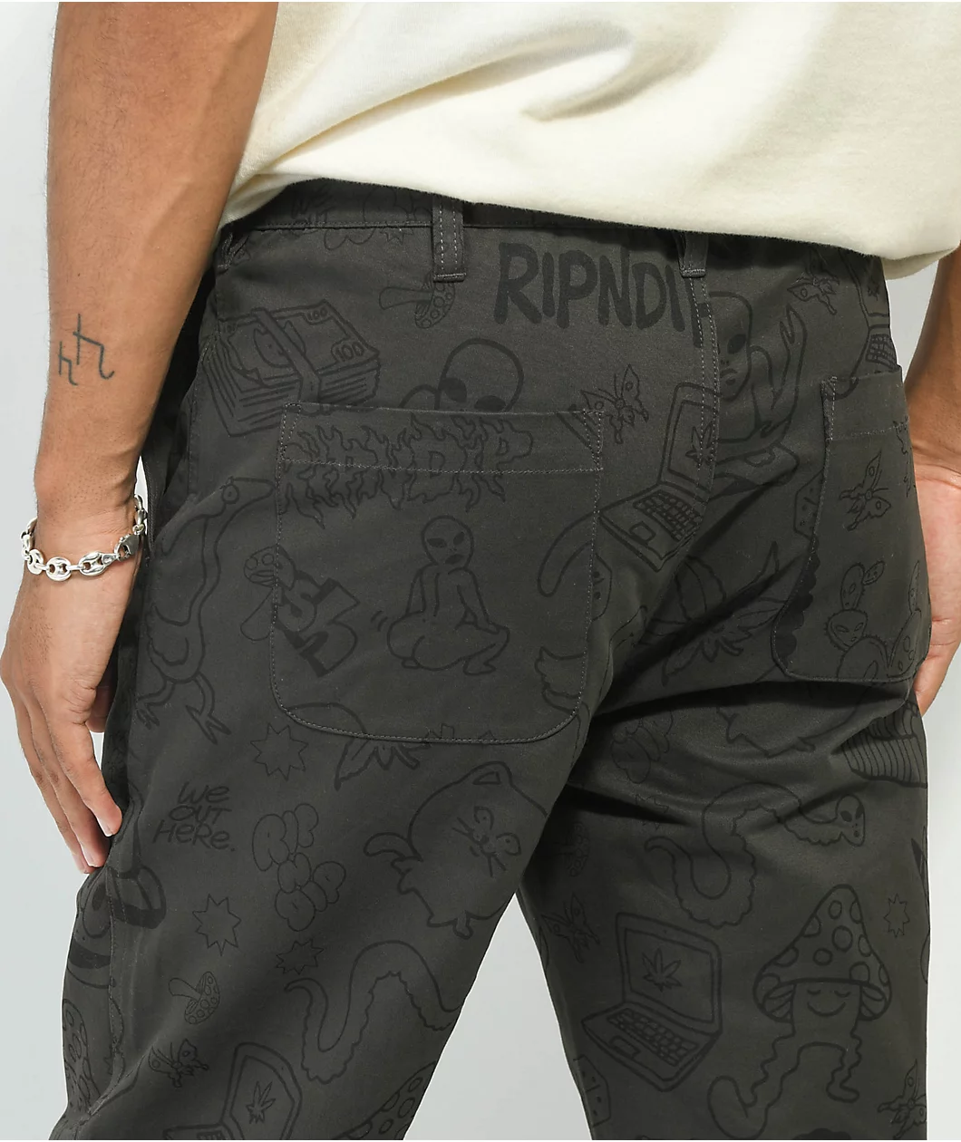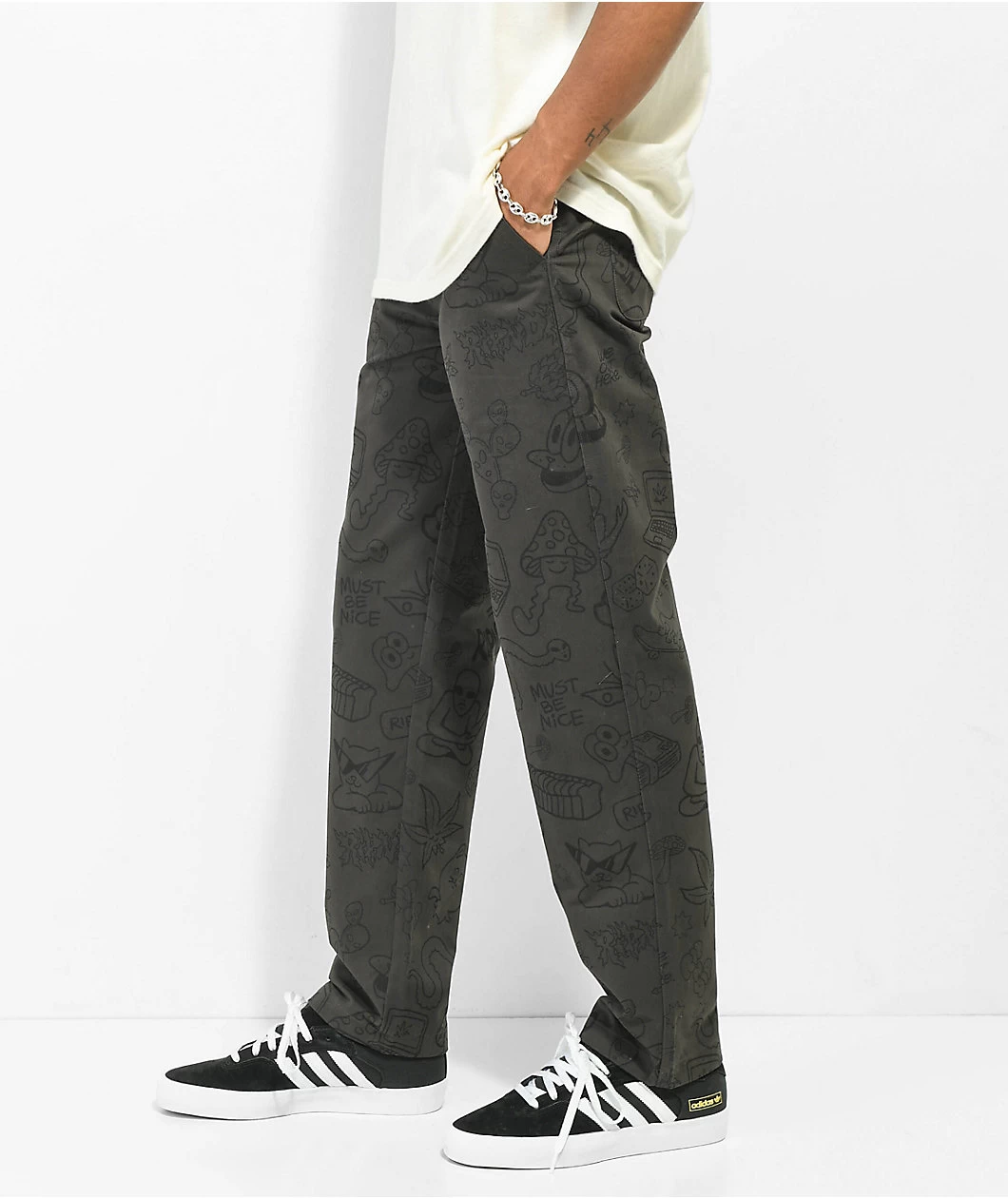 From RIPNDIP comes the Nerm Doodle chino pants that come in a dark brown colorway and feature black RIPNDIP doodles throughout. The pants are constructed from a soft and thin cotton, and have a relaxed, straight leg fit with a standard chino 4 pocket configuration.