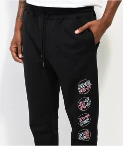 The Outline Stripe sweatpants from Santa Cruz come in a black colorway with a drawstring-adjustable waist and elastic leg openings. These sweatpants feature the brand logo repeated down the left leg and script down the right leg for unmistakable branding. For any loose items or to keep your hands warm, there are two slash hand pockets and a back patch pocket.