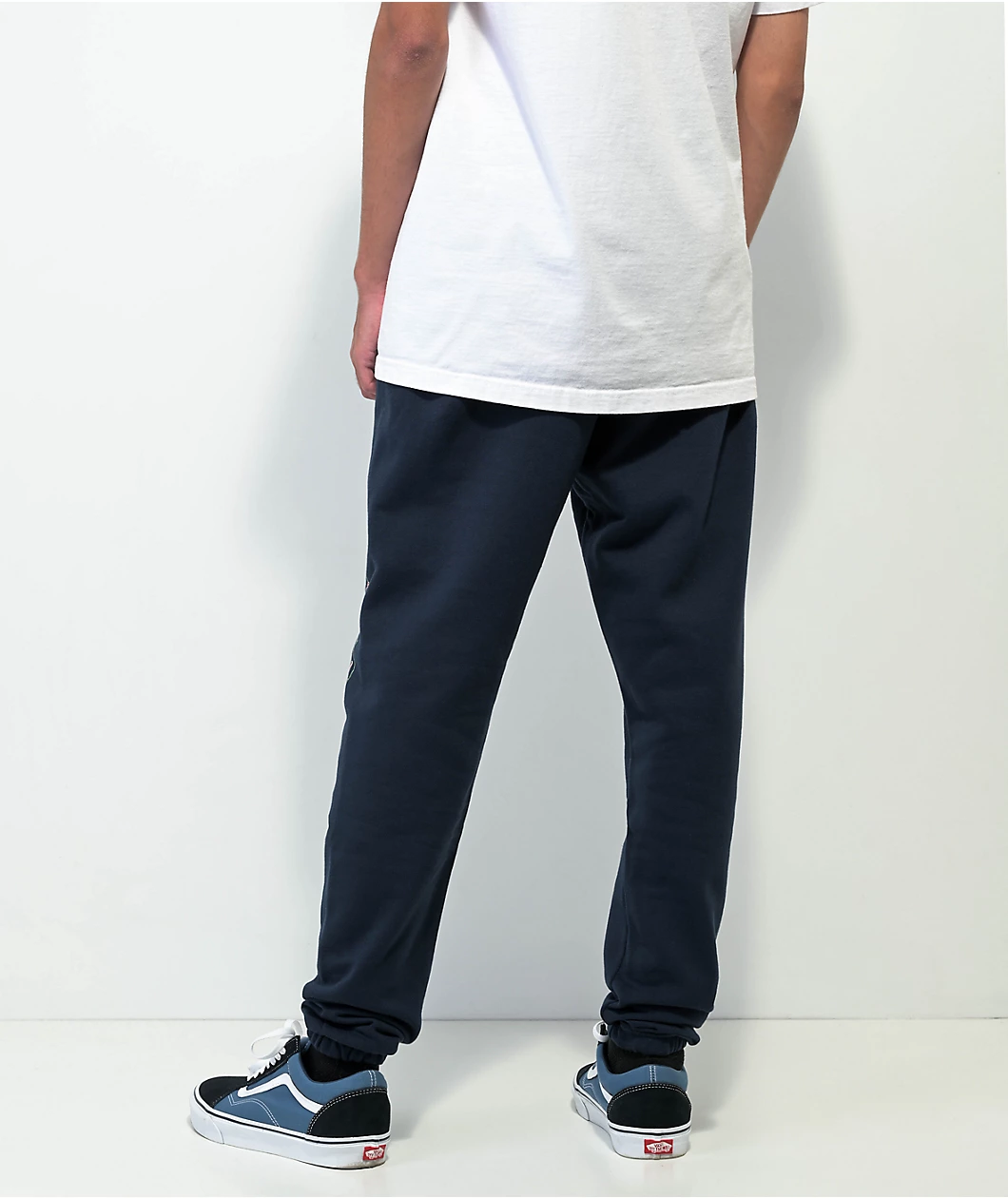 The Outline Stripe sweatpants from Santa Cruz come in a navy colorway with the brand’s Japanese logo printed down the left leg and peach brand script down the right. These comfy pants are made of a soft cotton-poly blend with a drawstring-adjustable waistband and tapered legs for a secure fit.