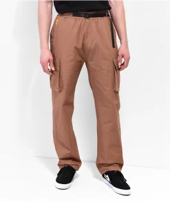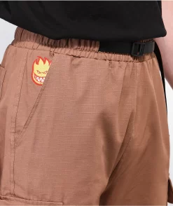 From Spitfire, the Bighead cargo pants come in an easily paired brown colorway with subtle embroidery on the right hip. Made from durable 100% cotton ripstop, the Spitfire skate pants feature an elastic waist with a built-in web belt to easily achieve a custom fit. With dual hand pockets, seat pockets secured with hook and loop closures, and cargo pockets along the thighs; the relaxed silhouette is finished with adjustable leg openings that can be cinched.