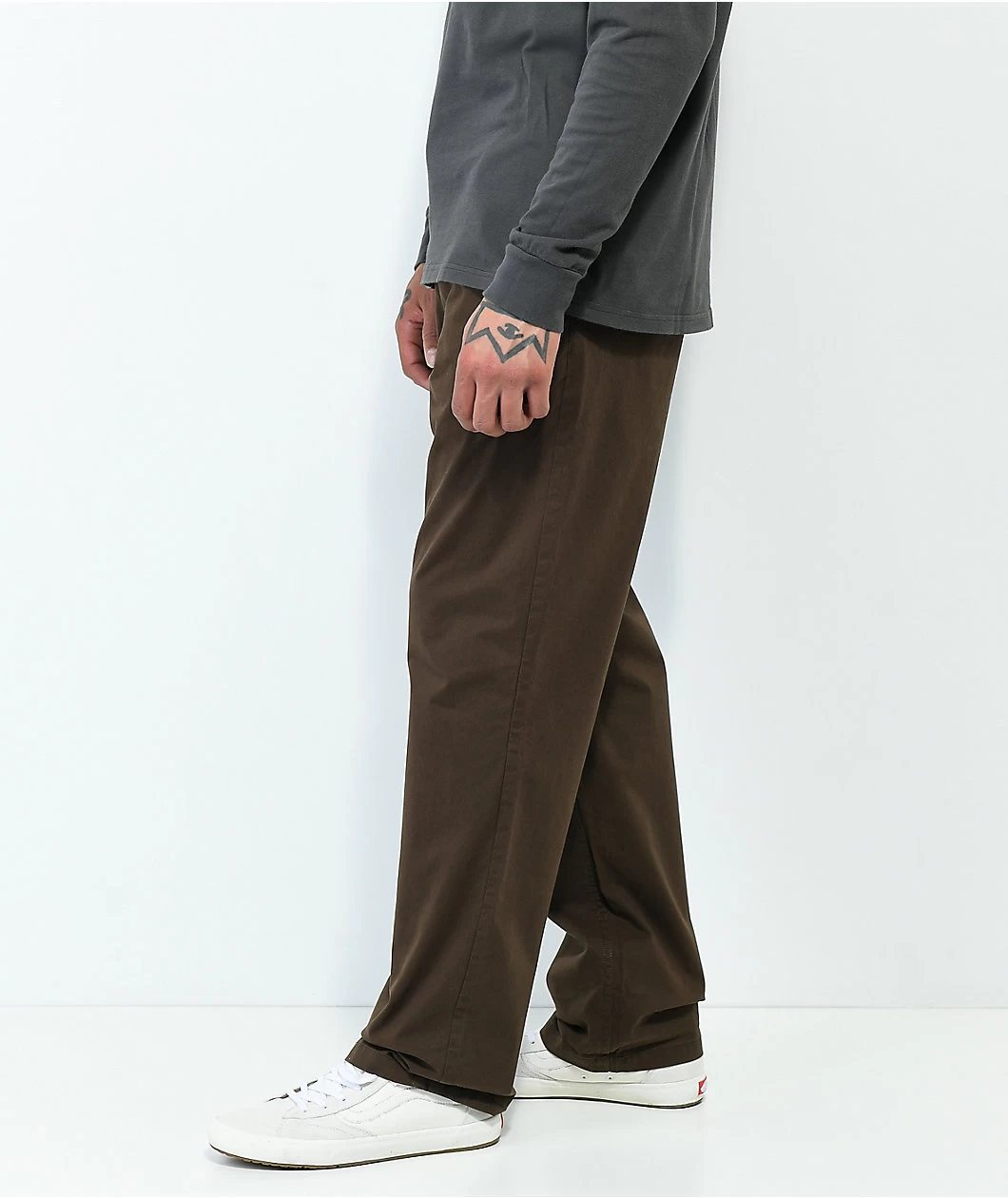 The Range Vans pants come in brown and have a relaxed fit through the thigh, hip and leg with a regular rise. The elastic waist has an external drawstring for a customizable fit. They have two slash hand pockets, a stash pocket at the right hip, two rear welt pockets, and are finished with a small woven brand patch at the rear.