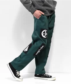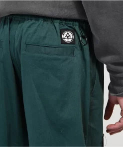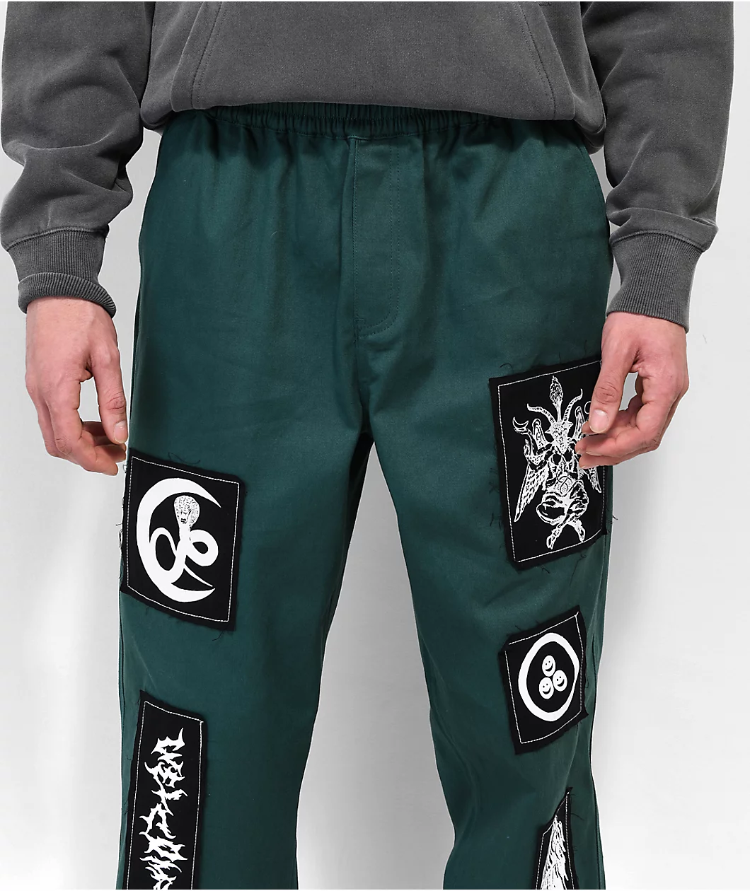 From Welcome comes the Volume pants in a forest green colorway, offering a versatile fit with an elastic waist and built-in drawstring. These relaxed pants are made from a cotton-spandex blend that is comfortable while allowing for uninterrupted movement, coming complete with sewn in patches throughout for a DIY style that’s sure to draw the eye.